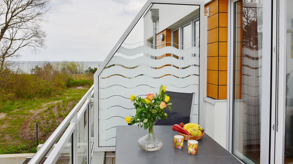 Sie besitzt einen Balkon mit z.T. Meerblick. Von hier aus genießen Sie den Blick über die Ostsee und verbringen eine entspannte Zeit.