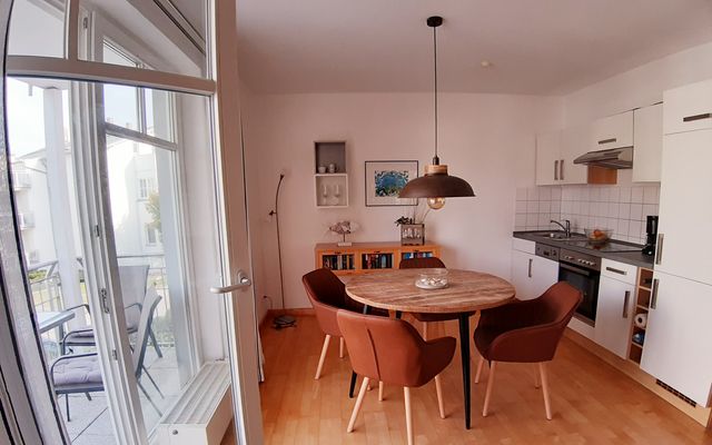 Die Ferienwohnung "Am Strand" in Juliusruh, liegt direkt am feinkörnigen, weißen Sandstrand der Ostsee! Sie bietet Schlafplätze für drei Personen mit einem Doppelbett (durchgehende Matratze) im Schlafzimmer und einer Schlafcouch im Wohnbereich. Aus dem Wohnbereich erreichen Sie zwei Balkone. Von einem genießen Sie seitlichen Meerblick. Im Schlafzimmer kann ein Babybett zugestellt werden. Ein Kinderstuhl ist ebenfalls vorhanden. Das Bad verfügt über eine Dusche. Zur Wohnung gehört ein Parkplatz in der Tiefgarage.