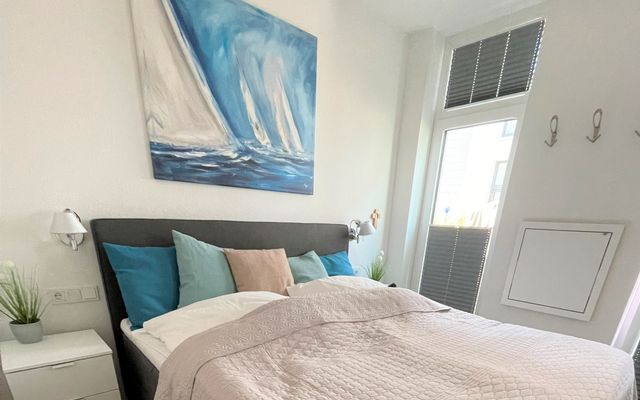 In der "Kleinen Robbe" finden max. 4 Gäste Platz. Im Schlafzimmer steht ein Boxspringbett (180x200cm), die Couch im Wohnbereich ist ausziehbar (180x200m). Beide Räume verfügen über TV-Geräte, leistungsfähiges WLAN ist vorhanden. An kühleren Tagen können Sie sich vor dem Kamin wärmen oder die Gemeinschaftssauna im Haus nutzen.