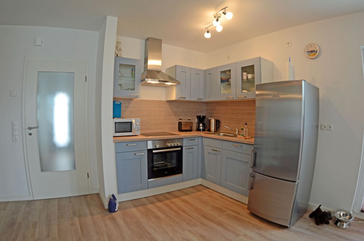 - Mikrowelle, Kaffeemaschine, Wasserkocher, Toaster, Kühlschrank mit Gefriermöglichkeit u.v.m.