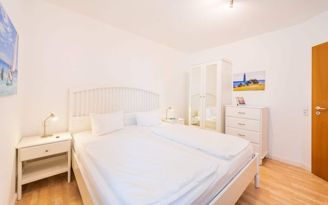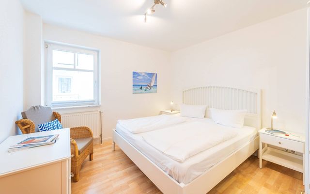 Unsere helle und moderne Ferienwohnung "Meerstern" im ersten Obergeschoss des Gebäudes mit zwei Schlafzimmern ist optimal geeignet für bis zu 4 Personen.