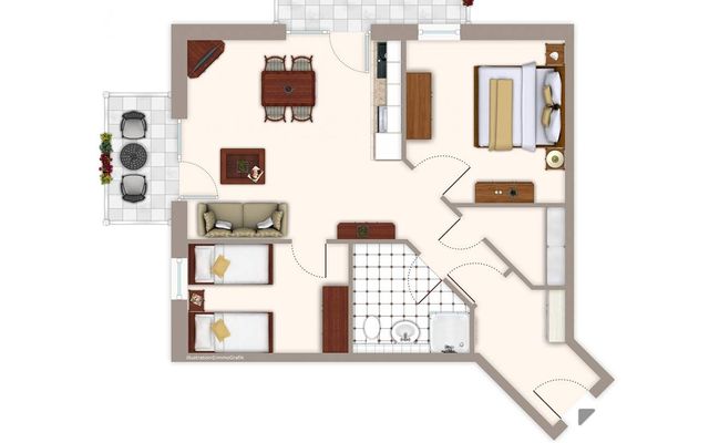 - 2 Schlafzimmer (Doppelbett & 2 Einzelbetten)