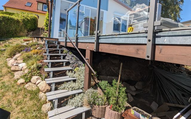 - große Terrasse in idyllischer Umgebung mit Aussicht