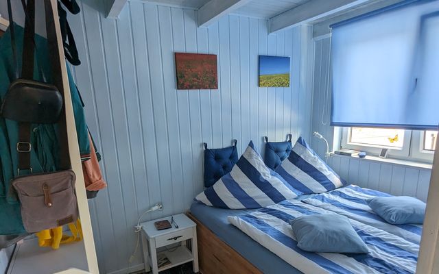 Unser Ferienbungalow "Boddenperle" am Breeger Bodden mit direktem Zugang ist ideal ausgestattet für zwei Personen. Vor dem Bungalow mit Wohnbereich mit Küchenzeile, kleinem Bad mit Dusche und Waschmaschine und einem Schlafzimmer mit Doppelbett ist eine große Terrasse mit Boddenblick vorgelagert. Das idyllische Wassergrundstück bietet außerdem einen Grill- und einen Lagerfeuerplatz.
