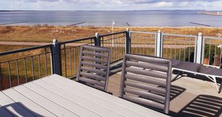 Für große oder befreundete Familien stehen die baugleichen Nachbarhäuser „Deich Frans", "Deich Alma“ und "Deich Michel" ebenfalls zur Verfügung. Es besteht die Möglichkeit, die Terrassentrennwände zu demontieren und so benachbarte Terrassen gemeinsam zu nutzen.