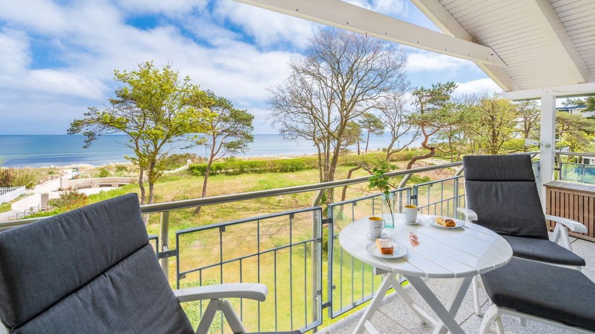 Sie besitzt 2 Balkone. Durch die Lage im 2. Obergeschoss schauen Sie vom Ost-Balkon weit über den Sandstrand der Schaabe und die Ostsee. Der Südbalkon liegt geschützt. Dort lässt es sich auch bei etwas mehr Wind gemütlich in der Sonne relaxen.