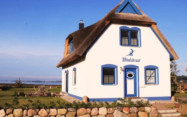 Im Ferienhaus "Windsbraut" fängt der Urlaub schon vor dem Betreten des Hauses an. An der Grundstücksgrenze begrüßt Sie ein malerischer Wall aus großen Natursteinen, dieser ist mit Wildrosen bepflanzt. Während der Blüte duften die Rosen und im Herbst haben diese einen Schmuck aus Hagebutten.