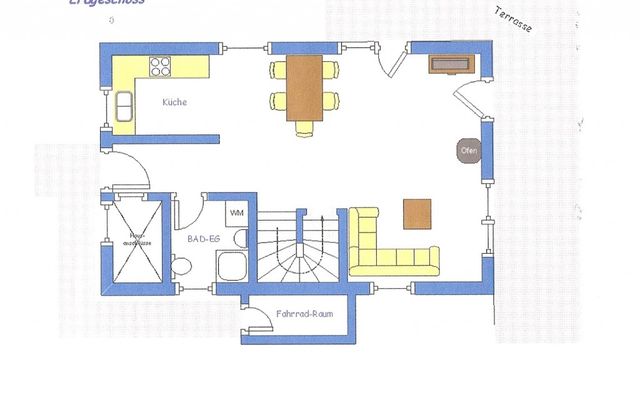 Im Erdgeschoss ist ein Bad vorhanden, welches mit Waschbecken, WC und einer Dusche sowie einer Waschmaschine ausgestattet ist.