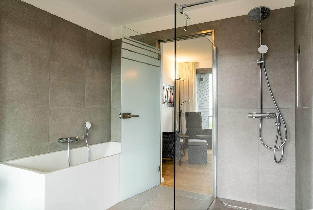 - Wellnessbereich mit Sauna, Dusche und Wannenbad, Relaxbereich mit Aussicht