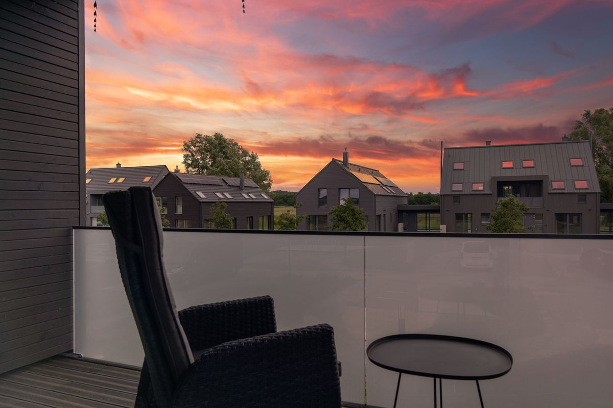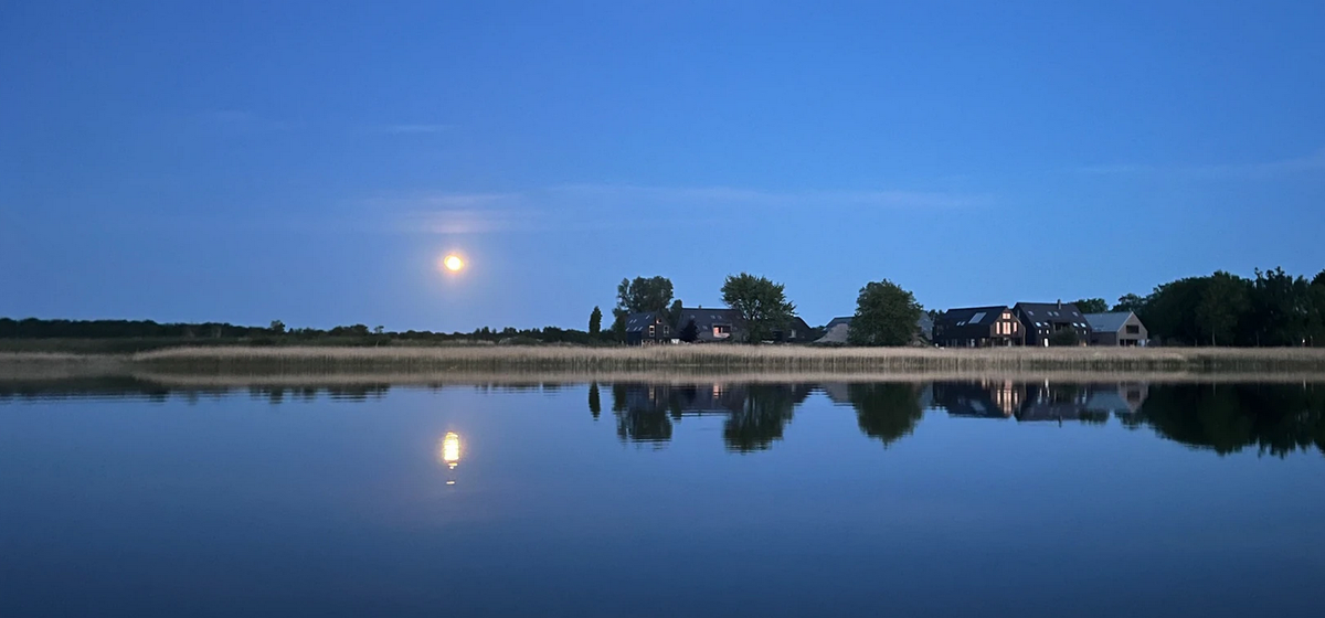 Das Herzstück des Hauses ist der große Wohnraum mit topp moderner Küche mit Kochinsel, großzügigem Essbereich, Kamin und etwas separat einer gemütlicher Couchecke mit TV. Außerdem befinden sich im Erdgeschoss ein Schlafzimmer, ausgestattet mit Doppelbett, TV und angeschlossenem Bad und ein Gäste-WC mit Waschmaschine und Trockner. Zwei weitere großzügige Schlafzimmer mit jeweils zwei Doppelbetten und TV befinden sich im ersten Obergeschoss. An diese grenzt ein Bad mit Walk-in-Dusche und Fenster. Die Galerie mit Ihrer Loggia eröffnet einen phantastischen, weiten Blick über die wunderbare Natur des angrenzenden Boddens bis nach Lietzow. Nachts ist sogar das Leuchtfeuer von Kap Arkona zu erkennen. Weiterhin steht hier ein Wellnessbad mit Sauna inkl. zusätzlichen Infrarotstrahlern zur Verfügung. Im Spitzboden sind zwei Einzelbetten und in einem weiteren Raum ein Arbeitsplatz (WLAN mit Glasfaseranschluss vorhanden) mit Aussicht auf den Bodden zu finden. Das Ferienhaus am See bietet Platz mit vollwertigen Betten für bis zu 8 Personen (weitere Aufbettung mit zwei Babybetten möglich).