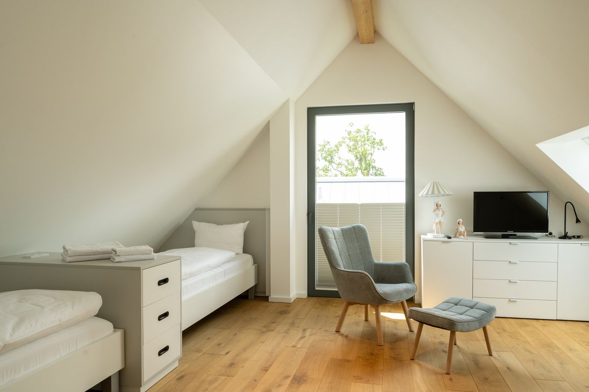 - 3 Schlafzimmer mit Doppelbett; im Spitzboden 2 weitere Einzelbetten