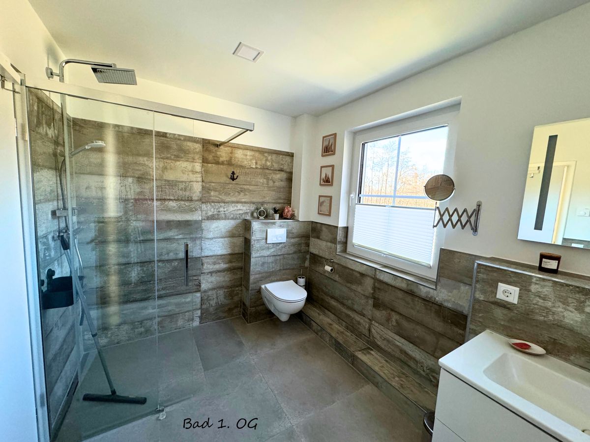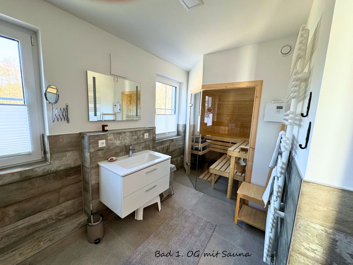 - 3 Bäder (1 Bad mit Dusche im EG, 1 Wellnessbad mit Dusche und Sauna im 1. OG, 1 Bad mit Dusche im 2. OG)