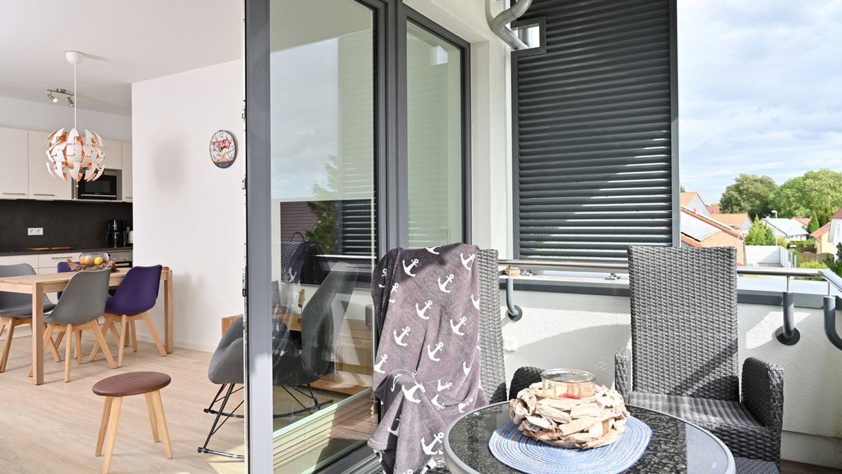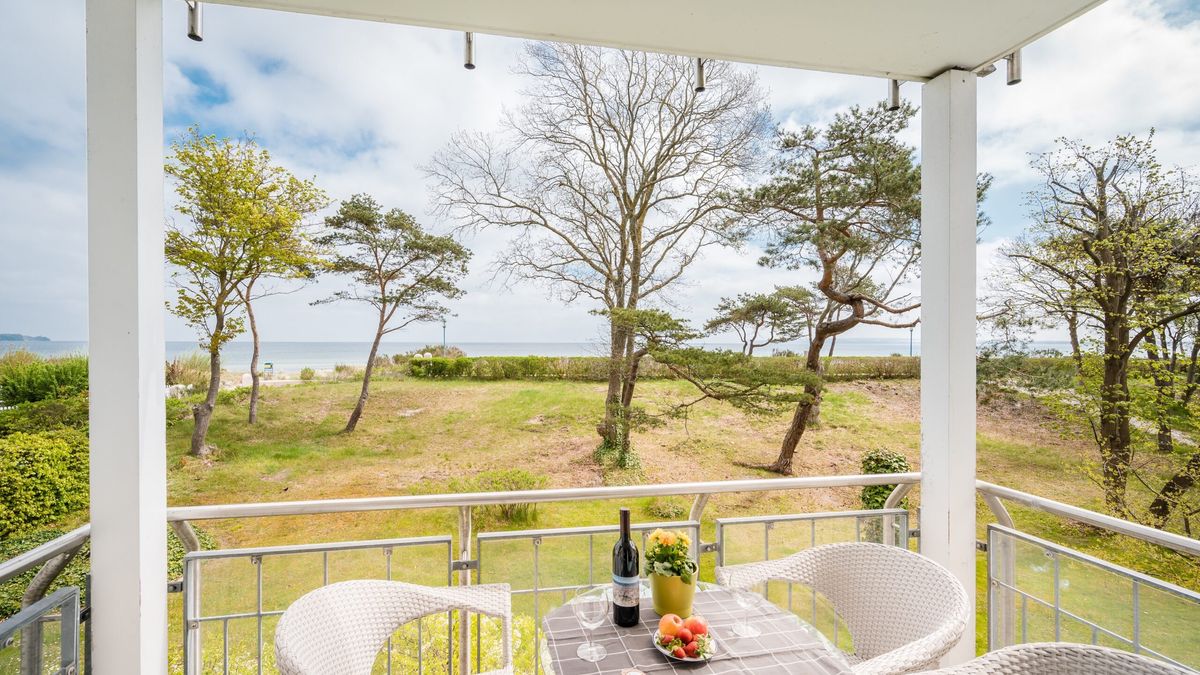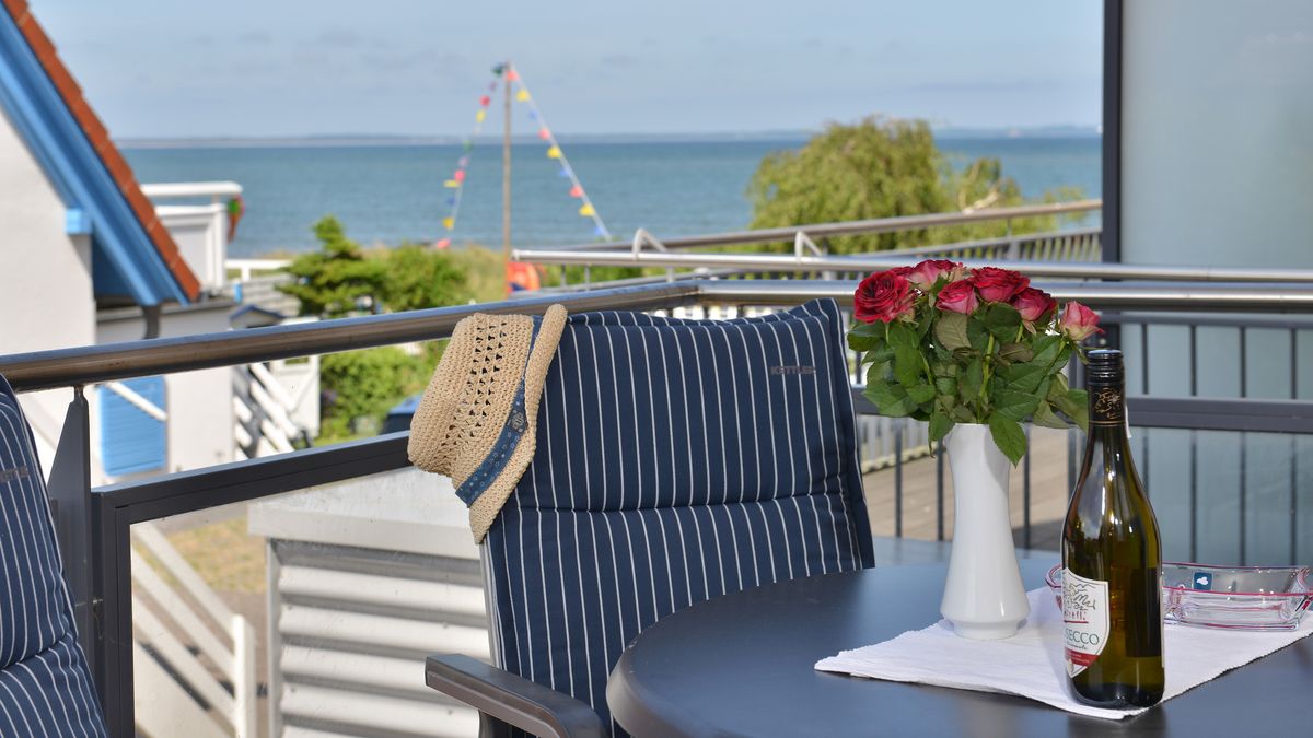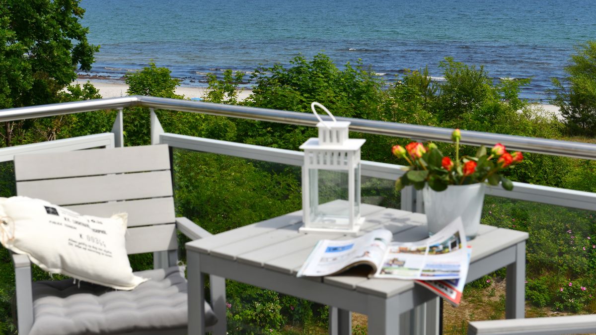 Sie besitzt 2 Balkone. Durch die Lage im 2. Obergeschoss schauen Sie vom Ost-Balkon weit über den Sandstrand der Schaabe und die Ostsee. Der Südbalkon liegt geschützt. Dort lässt es sich auch bei etwas mehr Wind gemütlich in der Sonne relaxen.