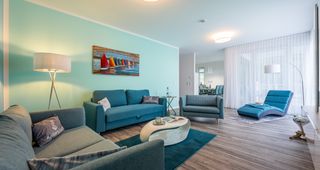 In der "Kleinen Robbe" finden max. 4 Gäste Platz. Im Schlafzimmer steht ein Boxspringbett (180x200cm), die Couch im Wohnbereich ist ausziehbar (180x200m). Beide Räume verfügen über TV-Geräte, leistungsfähiges WLAN ist vorhanden. An kühleren Tagen können Sie sich vor dem Kamin wärmen oder die Gemeinschaftssauna im Haus nutzen.