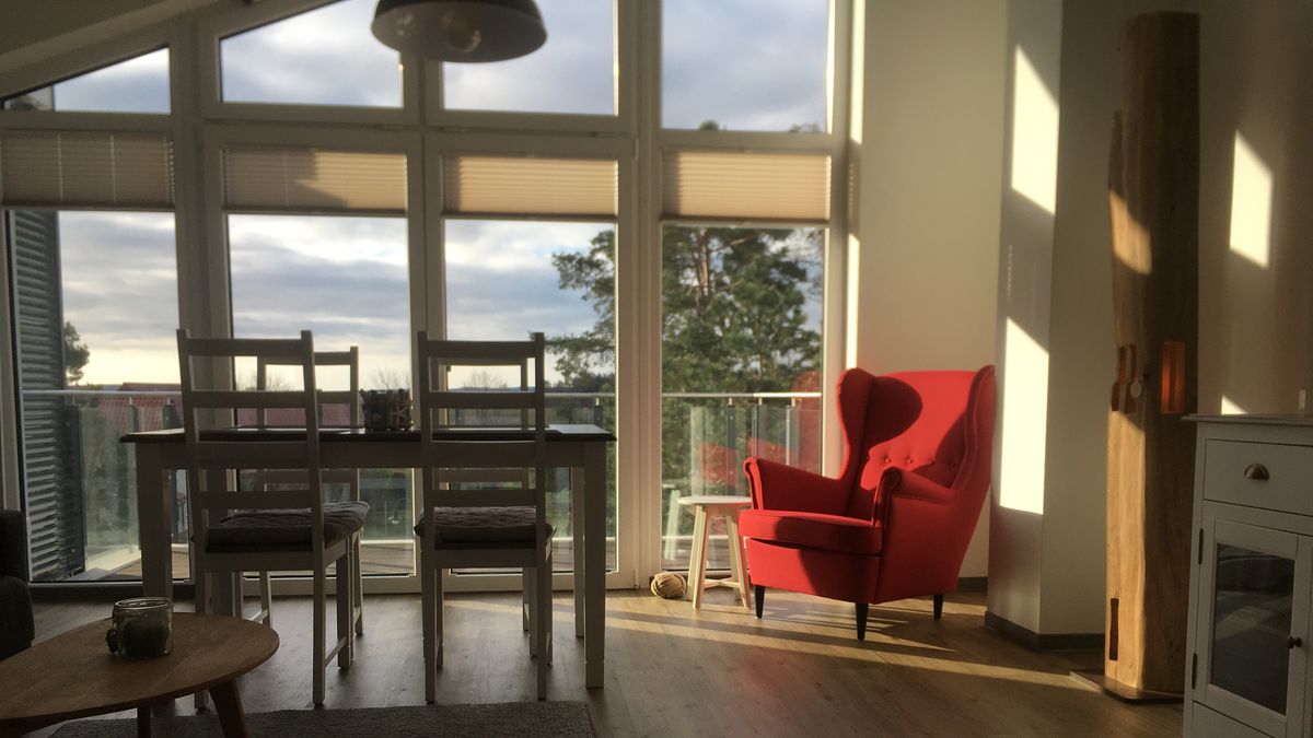 Sie besitzt einen Balkon mit z.T. Meerblick. Von hier aus genießen Sie den Blick über die Ostsee und verbringen eine entspannte Zeit.