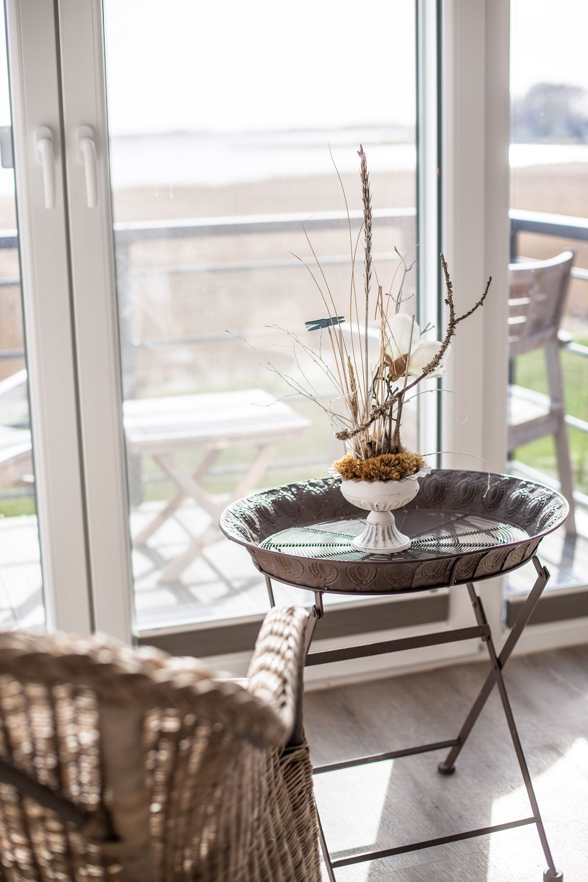 - Sonnenterrasse mit Gartenmöbeln und Strandkorb