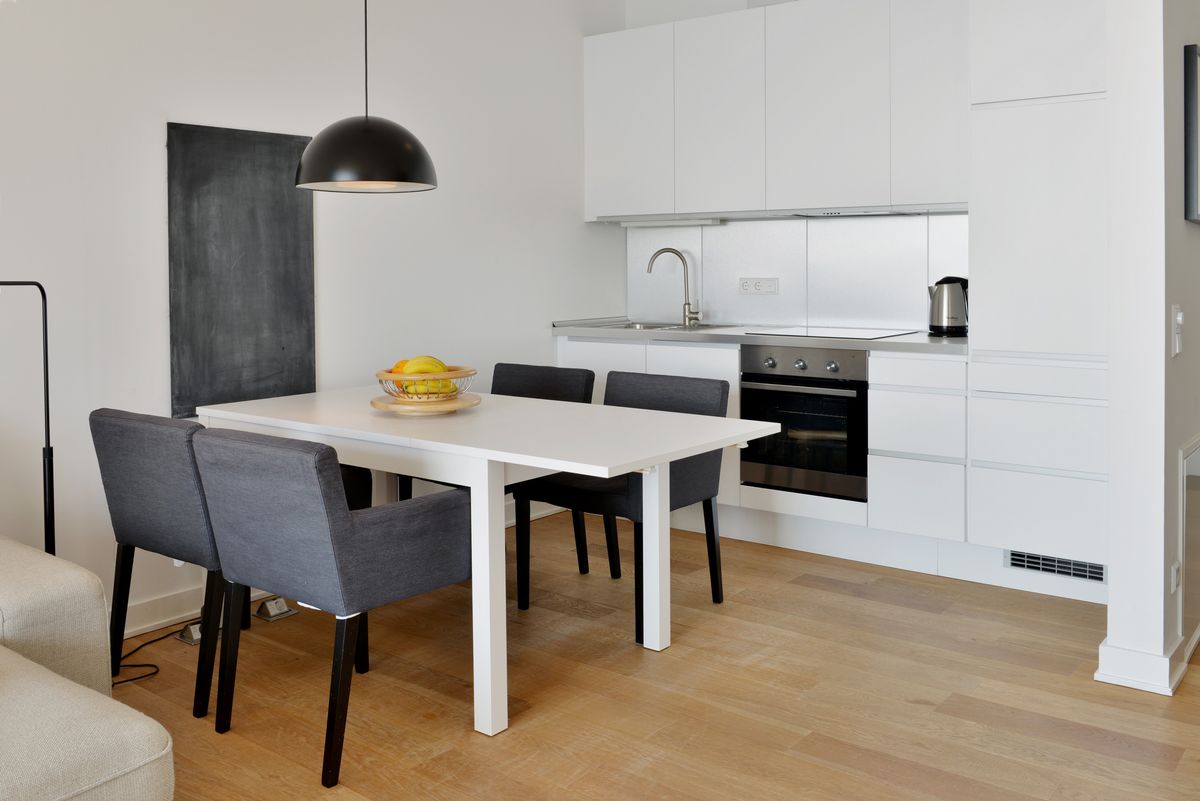 - Küche mit Mikrowelle, Kühlschrank mit Gefrierteil, Kaffeemaschine, Wasserkocher, Toaster u.v.m.