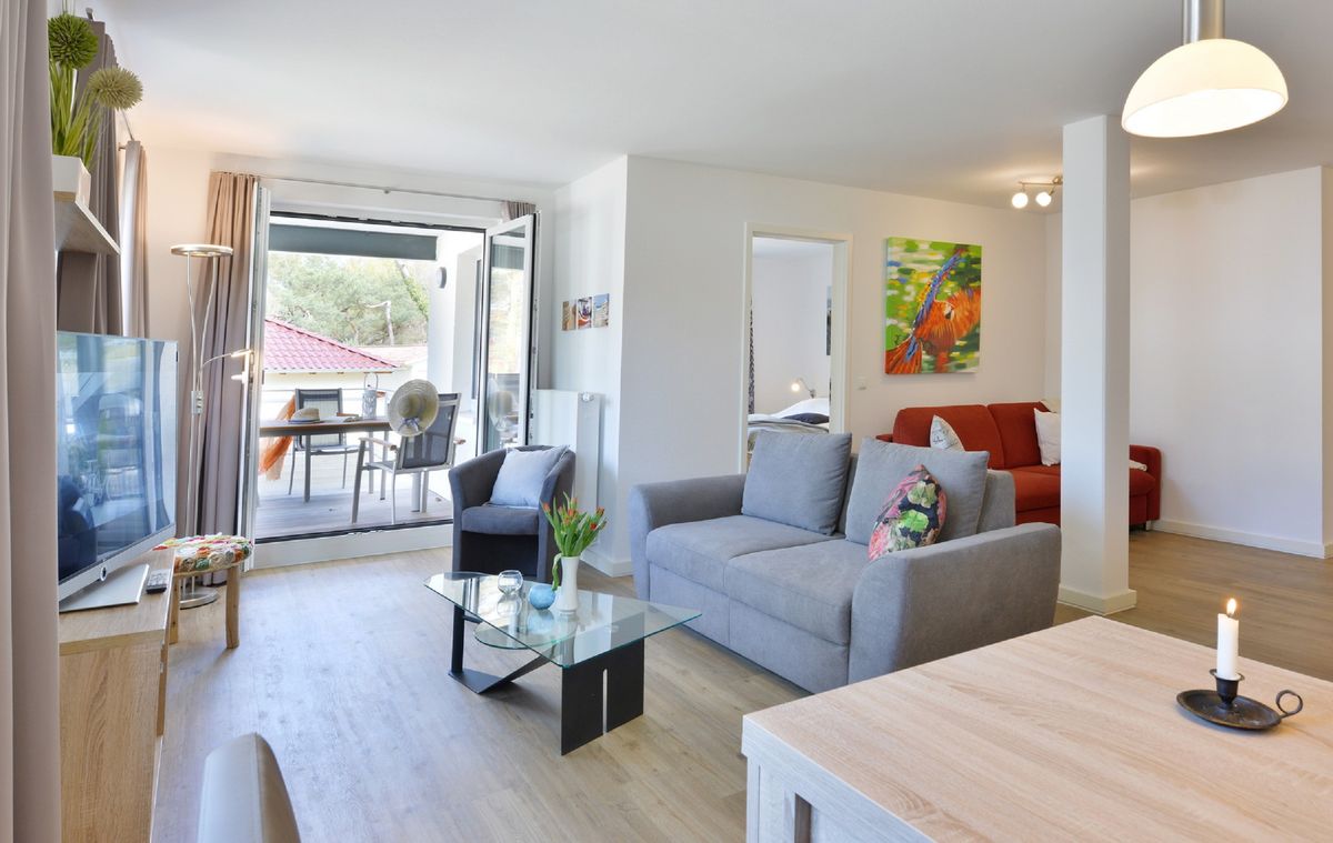 Die Ferienwohnung "Sonnenschein" befindet sich im Strandhaus Juliusruh, direkt am weißen Sandstrand der Ostsee von Juliusruh. Von der großen Terrasse mit Sitzgruppe und Strandkorb vernehmen Sie das Rauschen der Wellen und genießen das Licht und die Wärme der Sonne.