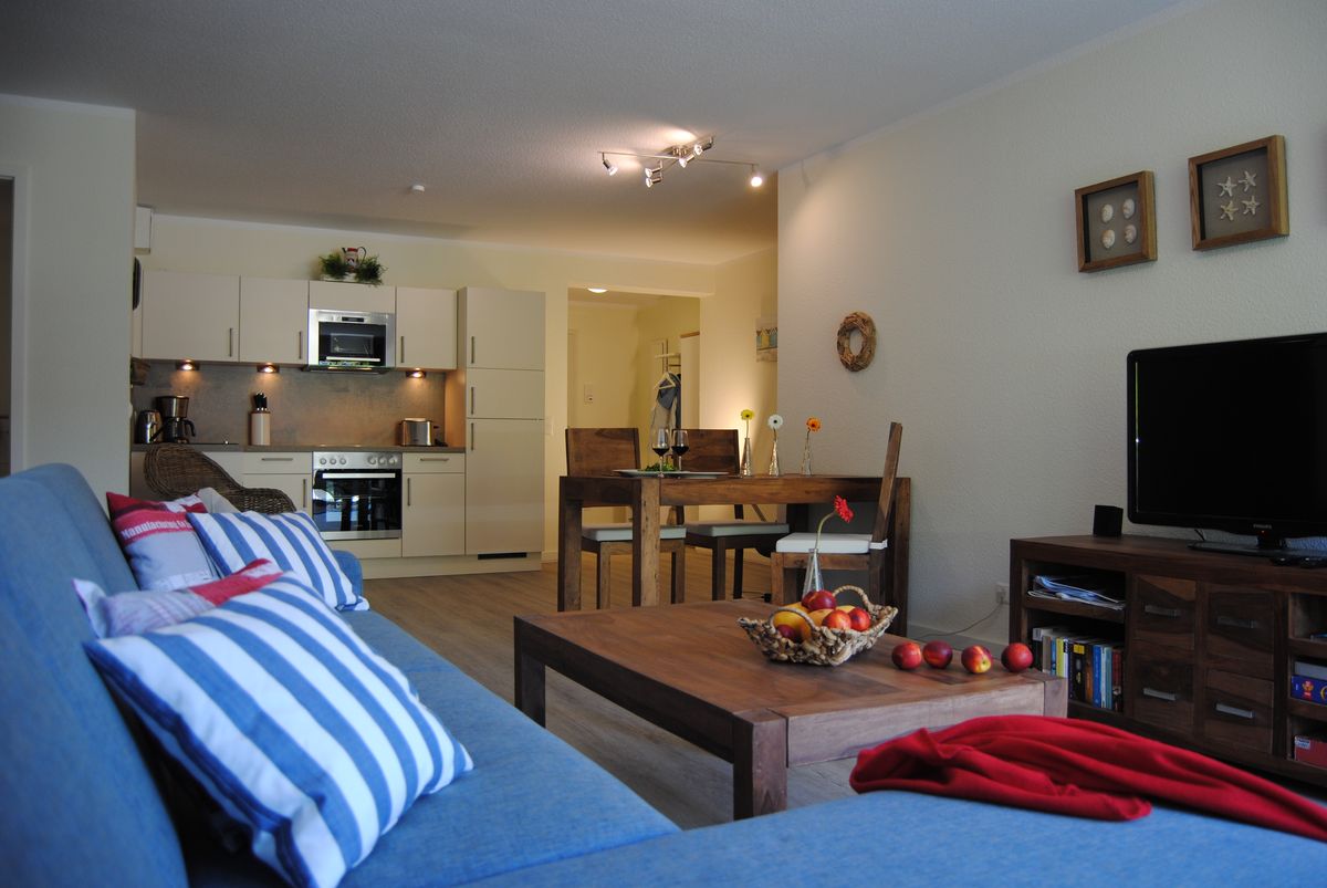 Die Ferienwohnung "Blaubärstrand" ist eine exklusive Unterkunft im "Strandhaus" Juliusruh. Sie ist komfortabel eingerichtet und liebevoll mit maritimen Accessoires gestaltet. Direkt hinter der Düne vom Seebad Juliusruh gelegen, können Sie die Ruhe und direkte Nähe zur Ostsee auf dem Balkon oder am Strand genießen.Das kombinierte Wohn- und Esszimmer ist mit einem großen LCD-Fernseher, Gesellschaftsspielen und Büchern ausgestattet. Das bequeme Sofa lässt sich zum Doppelbett für die 3. und 4. Person ausklappen und garantiert einen erholsamen Schlaf. Zusätzlich gibt es einen schönen Sessel, um auch von drinnen den Blick auf die Ostsee zu genießen. In der exklusiv eingerichteten Küche können Hobbyköche und –köchinnen ihre Lieblingsmahlzeiten zubereiten, den Abwasch erledigt eine Spülmaschine. Den Tag kann man bei einem guten Glas Wein auf dem Balkon mit Meerblick entspannt ausklingen lassen. Im Schlafzimmer gibt es zweiten LCD-Fernseher und ein Doppelbett mit qualitativ hochwertigen Matratzen. Kinder sind hier auch willkommen: Hochstuhl und Babybett warten schon! Das geräumige Bad verfügt über eine Echtglas-Dusche und eine Fußbodenheizung. Mit dem Fahrstuhl erreicht man problemlos die Sauna im Keller, welche zur eigenen Nutzung reserviert und ohne zusätzliche Kosten genutzt werden kann. Waschmaschine und Trockner stehen im Haus zur Verfügung. Ein Parkplatz vor dem Haus ist ebenfalls vorhanden.