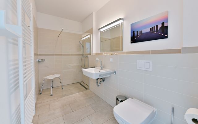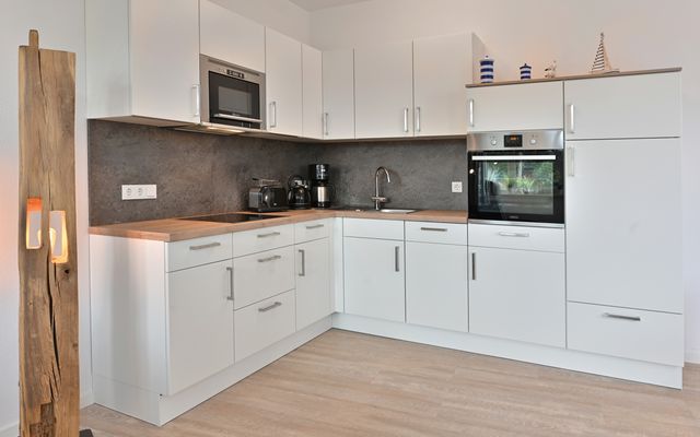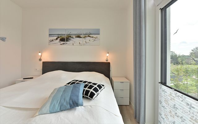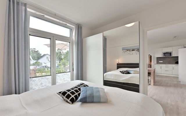 Die Wohnung bietet auf 54qm Wohnfläche einen gemütlichen Wohnraum mit integrierter Küche, einen Schlafraum mit Doppelbett und ein Bad mit Dusche. Auf der 25qm großen Terrasse mit Süd-West-Ausrichtung genießen Sie die frische Seeluft im Strandkorb. Die Terrasse ist aus dem Wohn- wie auch aus dem Schlafbereich begehbar. Zur Wohnung gehört außerdem ein Parkplatz. Im Haus steht eine Sauna mit Relaxbereich zur Verfügung, die Sie nach Anmeldung kostenfrei nutzen.