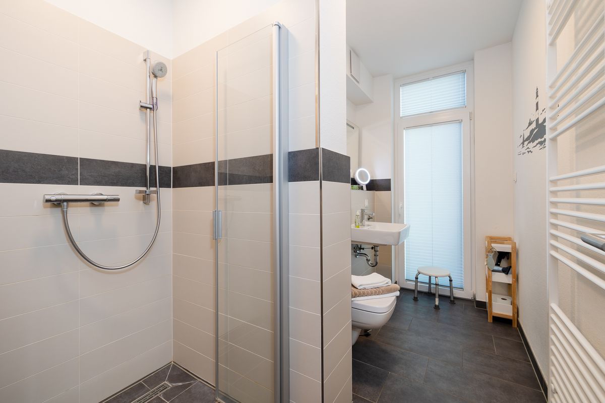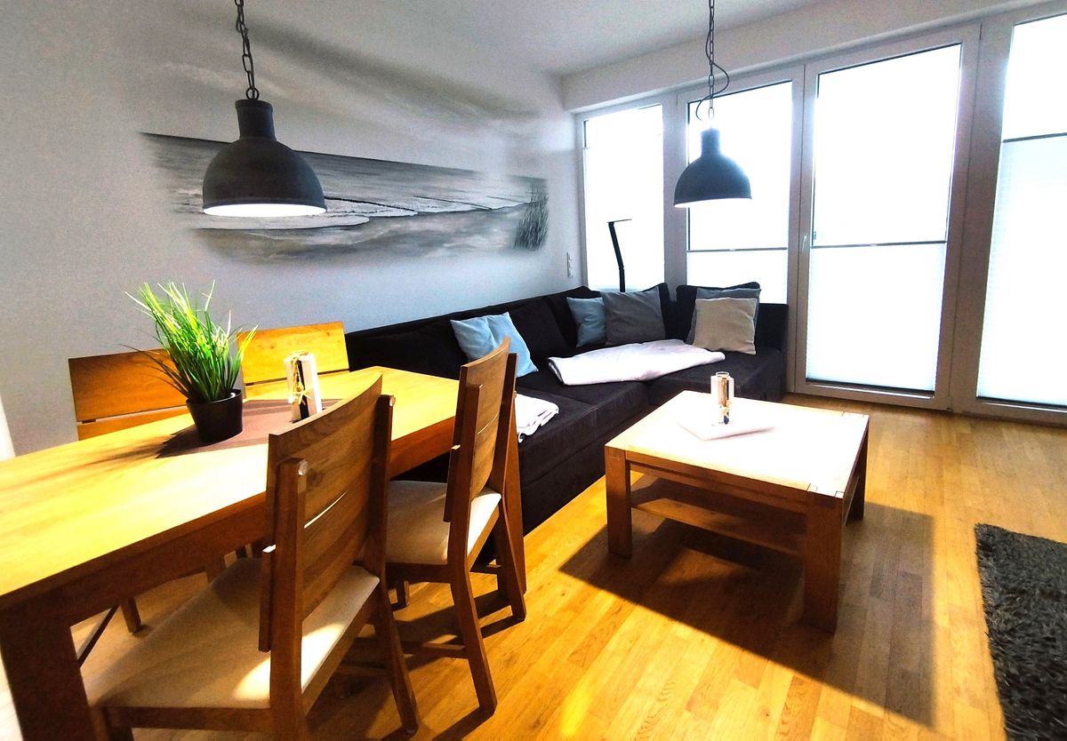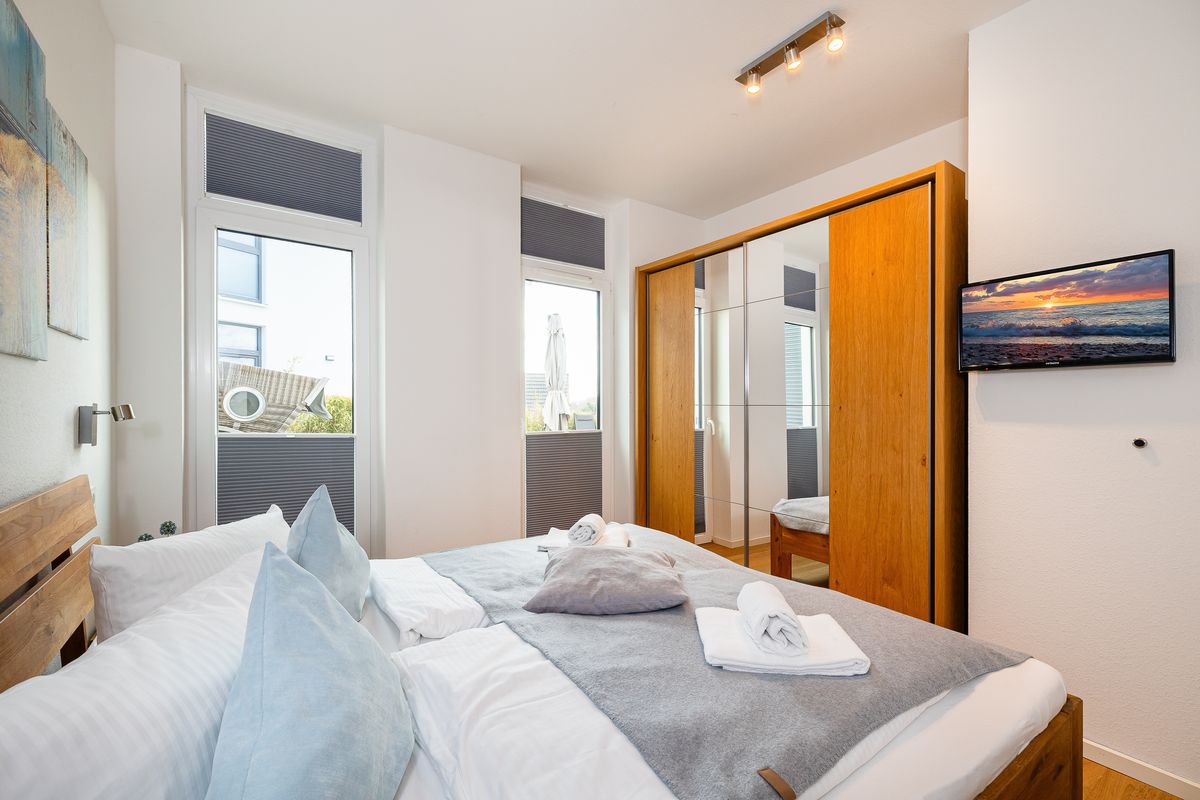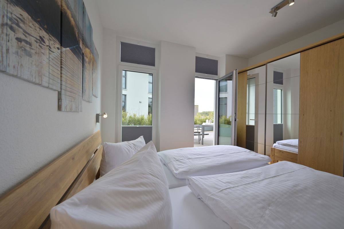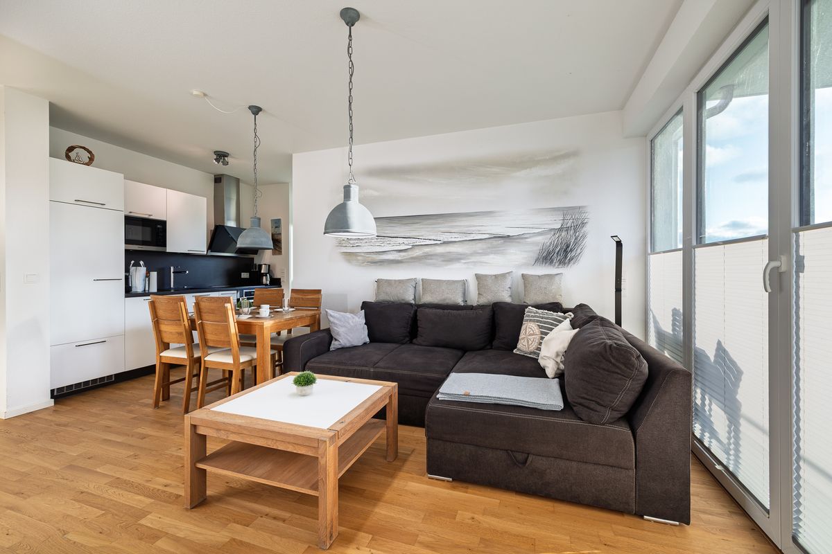 Die Ferienwohnung "Sonnenterrasse" befindet sich im "Bodden-Markt Glowe" im Ortszentrum des Erholungsortes. Hier können Sie Ihren Urlaub genießen und sind trotzdem mittendrin. Die Wohnung bietet auf ca. 62qm Wohnfläche einen gemütlichen Wohnraum mit integrierter Küche, einen Schlafraum mit Doppelbett und ein Bad mit Dusche. Sowohl auf der 30qm großen Dachterrasse mit Gartenmöbeln und Strandkorb (ab Frühjahr 2023) als auch auf dem zusätzlichen Balkon mit Süd-West-Ausrichtung genießen Sie Ihren Urlaub. Zur Wohnung gehört außerdem ein Tiefgaragenparkplatz. Im Haus steht eine Gemeinschaftssauna mit Relaxbereich zur Verfügung, welche Sie nach Anmeldung kostenfrei nutzen.