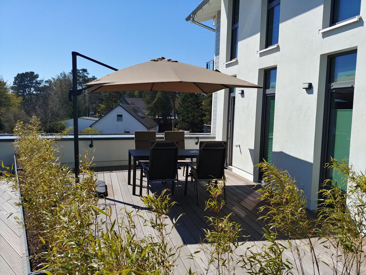 - Balkon, Terrasse mit Gartenmöbeln, Sonnenschirm, Strandkorb (ab Frühjahr 2023)