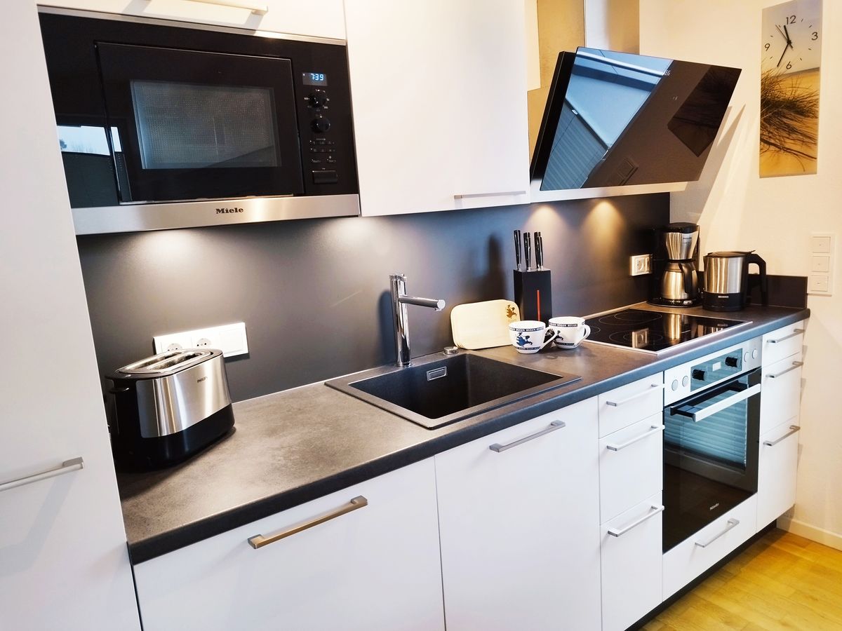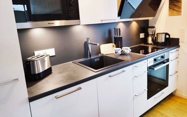 - Mikrowelle, Kaffeemaschine, Wasserkocher, Toaster, Kühlschrank mit Gefriermöglichkeit u.v.m.