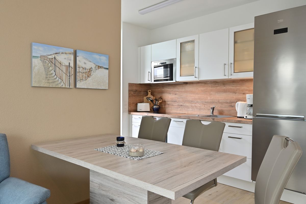 Die Ferienwohnung "Selma" befindet sich im Neubau "Bodden-Markt Glowe" im Ortszentrum des Erholungsortes. Die Wohnung bietet auf ca. 62 qm Wohnfläche einen gemütlichen Wohnraum mit integrierter Küche, einen Schlafraum mit Doppelbett und ein Bad mit Dusche. Auf der 57 qm großen Terrasse mit Süd-West-Ausrichtung lassen Sie die Seele baumeln. Zur Wohnung gehört außerdem ein Parkplatz. Im Haus steht eine Gemeinschaftssauna mit Relaxbereich zur Verfügung, welche Sie nach Anmeldung kostenfrei alleine nutzen können.