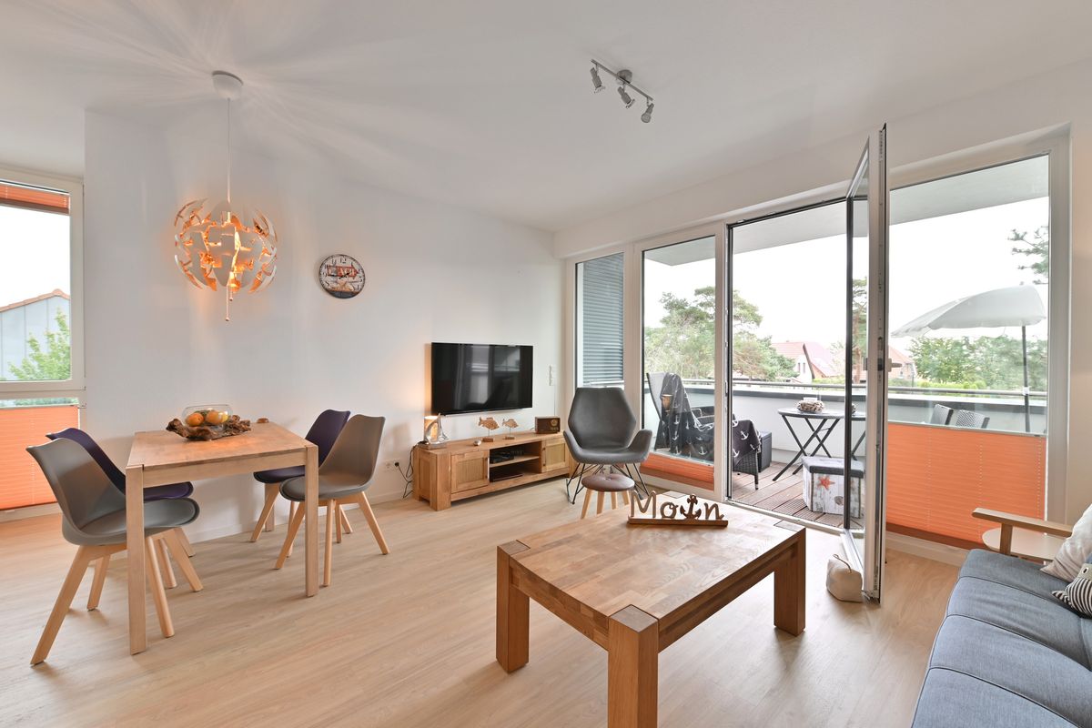 Die Ferienwohnung "Sonneneck" befindet sich im neuerbauten "Bodden-Markt Glowe" im Ortszentrum des Erholungsortes. Auf ca. 55qm Wohnfläche steht Ihnen ein gemütlicher Wohnraum mit integrierter Küche, ein Schlafraum mit Doppelbett und ein Bad mit ebenerdiger Dusche zur Verfügung. Vom Balkon mit Süd-Ausrichtung genießen Sie den Blick ins Grüne. Für unseren kleinen Gäste stehen ein Kinderbett sowie ein Kinderhochstuhl zur Verfügung. Zur Wohnung gehört außerdem ein Parkplatz. Im Haus steht eine Sauna mit Relaxbereich und Schwalldusche zur Verfügung. Einkaufsmöglichkeiten, Cafes und Restaurants und den kilometerlangen, feinkörnigen Strand der Ostsee finden Sie in unmittelbarer Nähe.