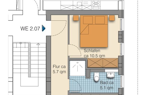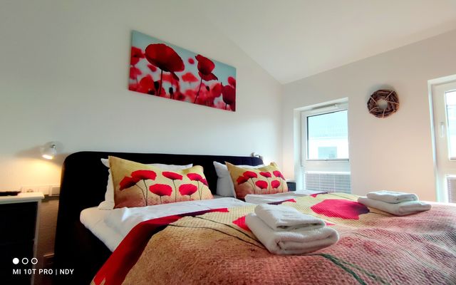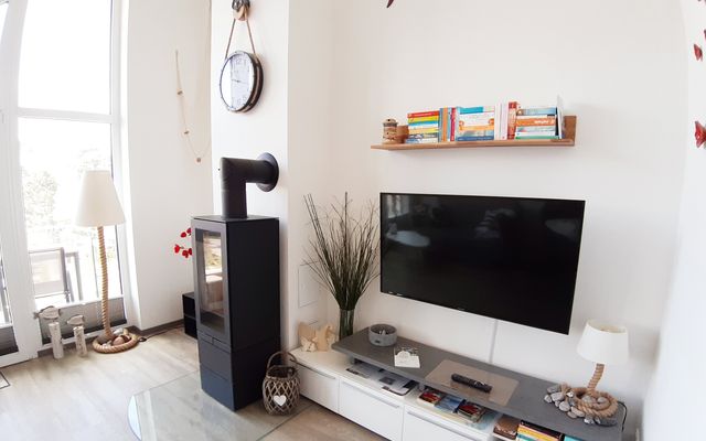 Die Wohnung bietet auf 50qm Wohnfläche einen gemütlichen Wohnraum mit integrierter Küche, einen Schlafraum mit Doppelbett und ein Bad mit bodengleicher Dusche. Sie bietet Platz für bis zu 4 Personen (2 Erw. + 2 Kinder). Auf dem Balkon mit West-Ausrichtung lassen Sie die Seele baumeln. An kalten Tagen können Sie gemütliche Stunden vor dem Kamin verbringen. Zur Wohnung gehört außerdem ein Parkplatz. Im Haus steht eine Gemeinschaftssauna mit Relaxbereich zur Verfügung, welche Sie nach Anmeldung kostenfrei nutzen.