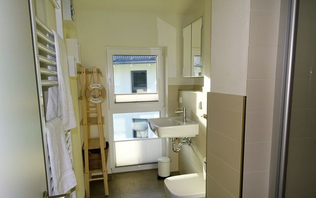 Die Ferienwohnung "Bella Elisa" befindet sich im Neubau "Bodden-Markt Glowe" im Ortszentrum des Erholungsortes. Sie liegt auf der ruhigen Seite des Gebäudes. So können Sie Ihren Urlaub genießen und sind trotzdem mittendrin. Die Wohnung bietet auf ca. 50qm Wohnfläche einen gemütlichen Wohnraum mit integrierter Küche, einen Schlafraum mit Doppelbett und ein Bad mit Dusche. Auf dem nach Süden ausgerichteten Balkon genießen Sie die frische Seeluft. Zur Wohnung gehört außerdem ein Parkplatz. Im Haus steht eine große Gemeinschaftssauna mit Relaxbereich und Schwalldusche zur Verfügung.