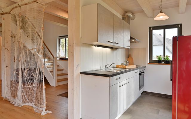 Das wunderschöne Holzhaus unter Reetdach "Treibholz" in Wiek auf Rügen befindet sich in ruhiger Ortslage, aber mit kurzen Wegen zum Hafen des Ortes oder zum Bäcker und Einkaufsmarkt.