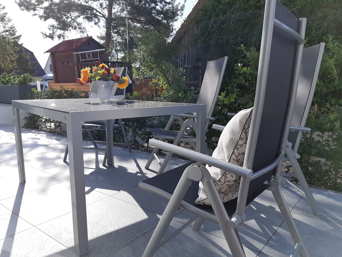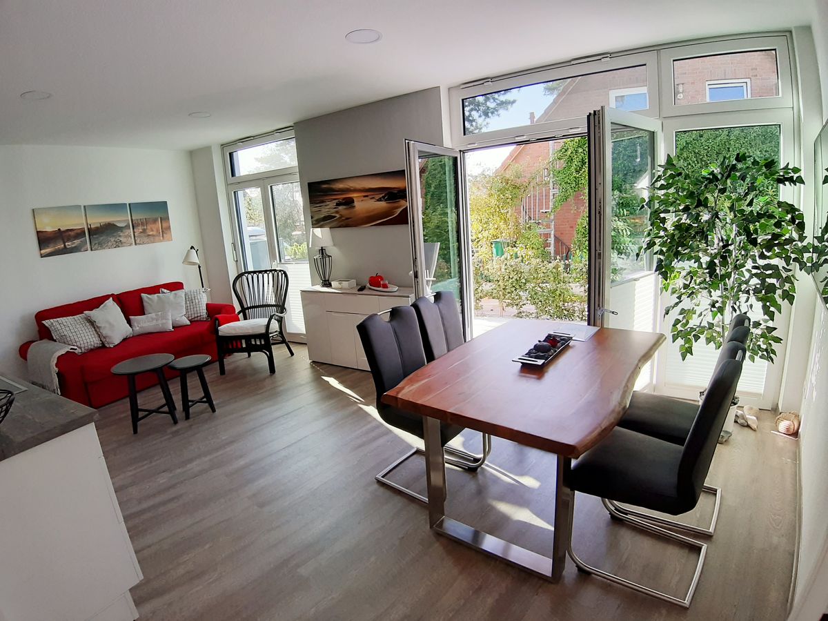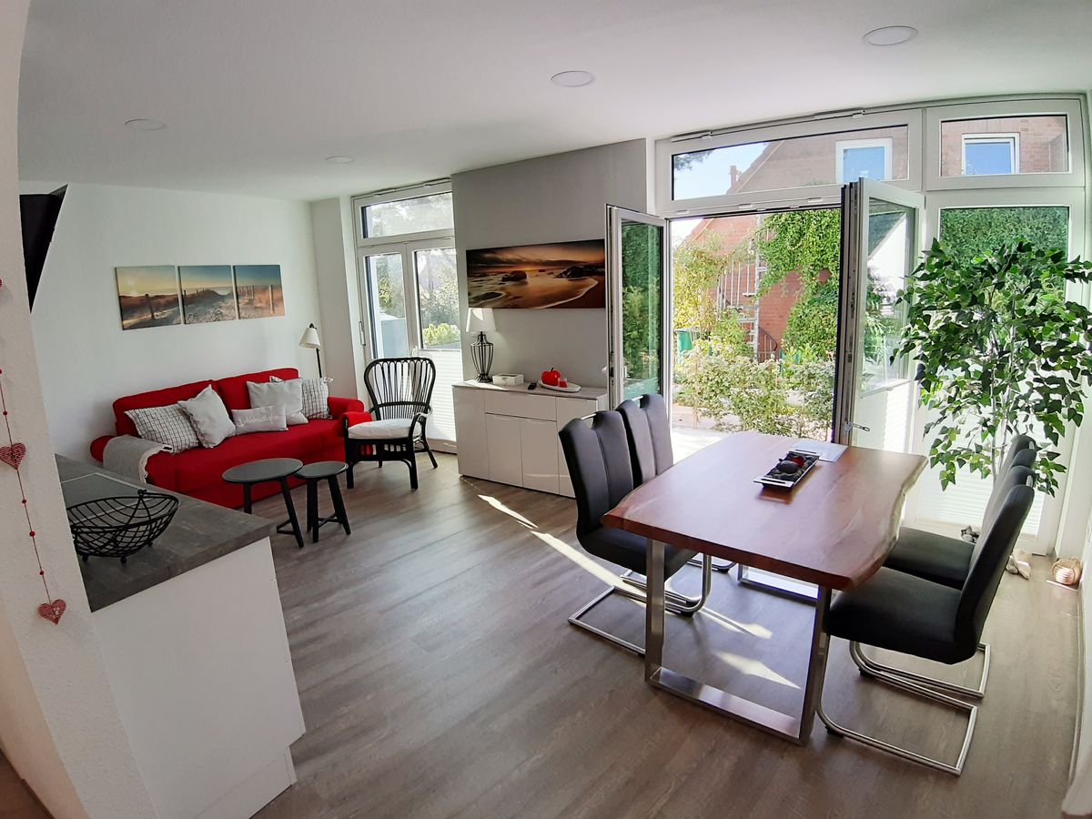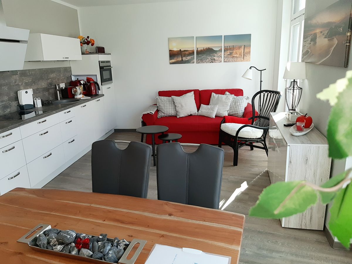 Unseren Gästen stehen ein gemütlicher Wohnraum mit integrierter Küche und Schlafcouch, ein Schlafzimmer mit Doppelbett und ein Bad mit bodengleicher Dusche zur Verfügung. Auf der 15qm großen Terrasse mit Süd-Ausrichtung relaxen Sie in Loungemöbeln. Sonnenliegen sind ebenfalls vorhanden. Den wunderschönen weißen Sandstrand der Schaabe erreichen Sie in zwei Gehminuten. Die Ferienwohnung ist nigelnagelneu, sehr modern ausgestattet und schick dekoriert - ein Domizil zum Wohlfühlen.