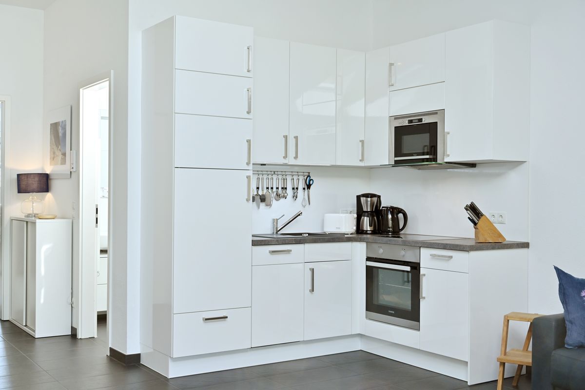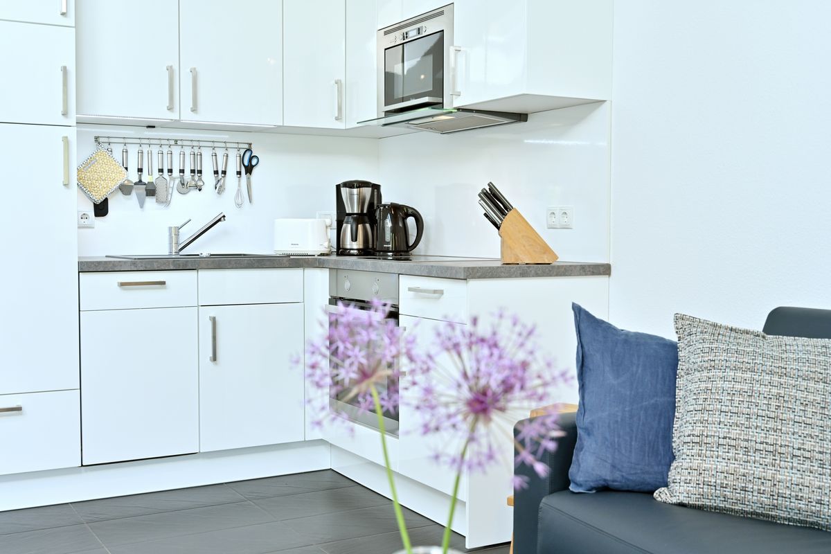 - Mikrowelle, Kaffeemaschine, Wasserkocher, Toaster, Kühlschrank mit Gefriermöglichkeit u.v.m.