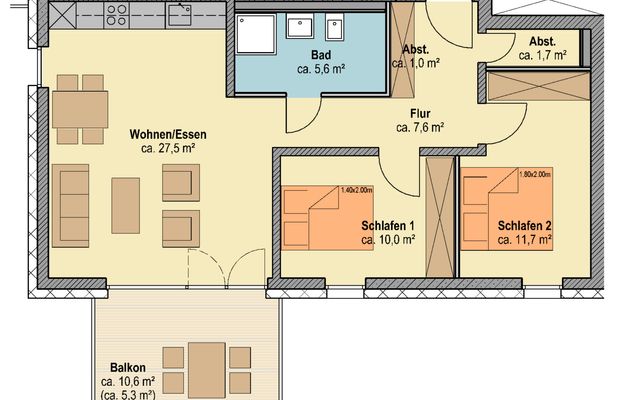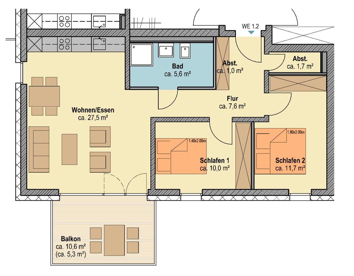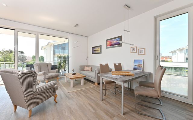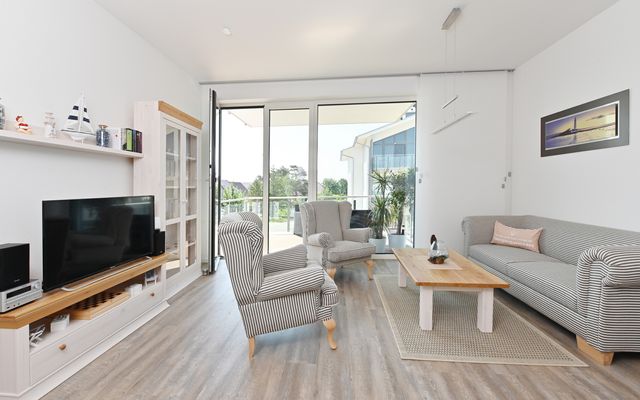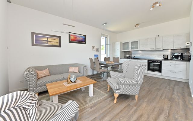Das "Gloweglück" befindet sich im neuerbauten "Haus Seezeichen" im Ortszentrum des Erholungsortes Glowe. Auf 70qm Gesamtwohnfläche verteilen sich ein gemütlicher Wohnraum mit integrierter Küche, 2 Schlafzimmer mit jeweils einem Doppelbett sowie ein Bad mit bodengleicher Dusche. Auf dem 10qm großen Balkon mit Süd-West-Ausrichtung genießen Sie die frische Seeluft. Zur Wohnung gehört außerdem ein Parkplatz in der hauseigenen Tiefgarage. Im angrenzenden Haus "Bodden-Markt" steht eine Gemeinschaftssauna mit Relaxbereich zur Verfügung, welche Sie nach Anmeldung kostenfrei nutzen.