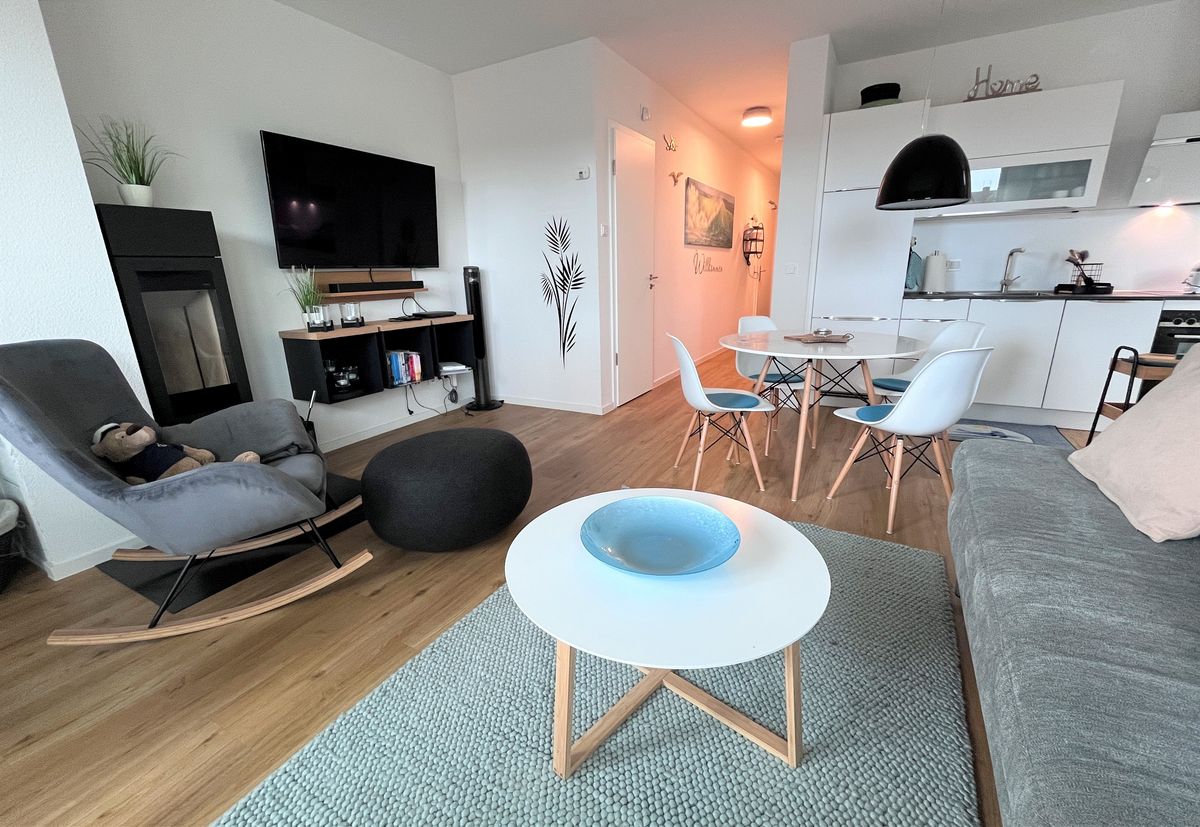In der "Kleinen Robbe" finden max. 4 Gäste Platz. Im Schlafzimmer steht ein Boxspringbett (180x200cm), die Couch im Wohnbereich ist ausziehbar (180x200m). Beide Räume verfügen über TV-Geräte, leistungsfähiges WLAN ist vorhanden. An kühleren Tagen können Sie sich vor dem Kamin wärmen oder die Gemeinschaftssauna im Haus nutzen.