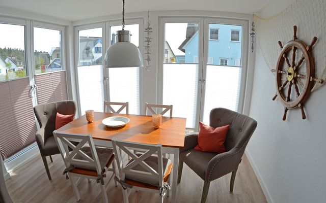 Die Schlüsselübergabe erfolgt im Büro der FEMARIS GmbH, Bodden-Markt 1 in 18551 Glowe.