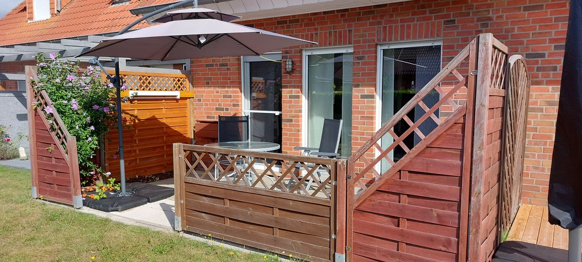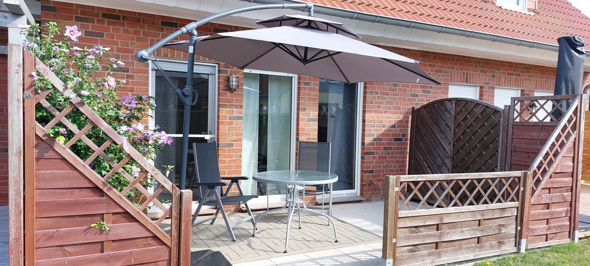 - gemütliche, sonnige Terrasse mit Bestuhlung, Tisch und Sonnenschirm