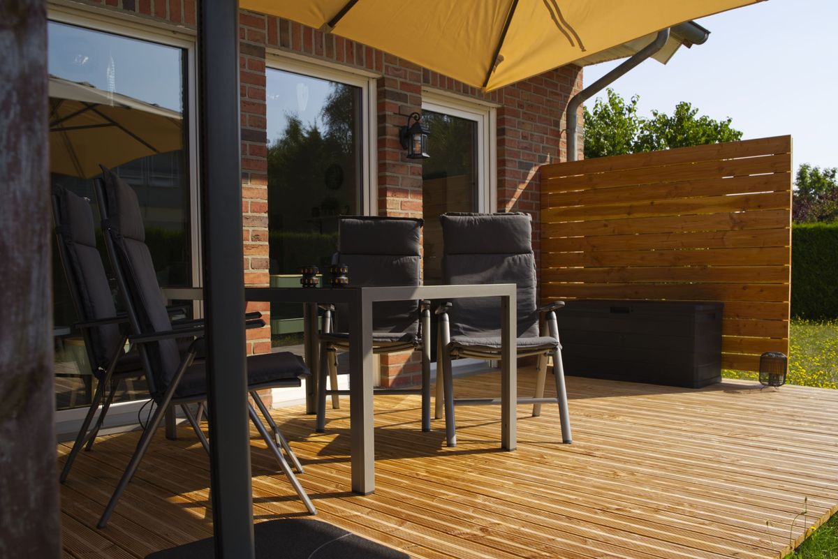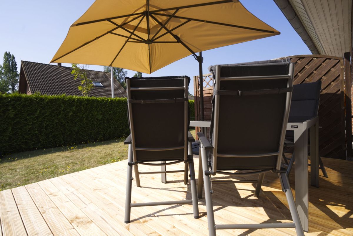 - gemütliche Terrasse mit Gartenbestuhlung und Sonnenschirm