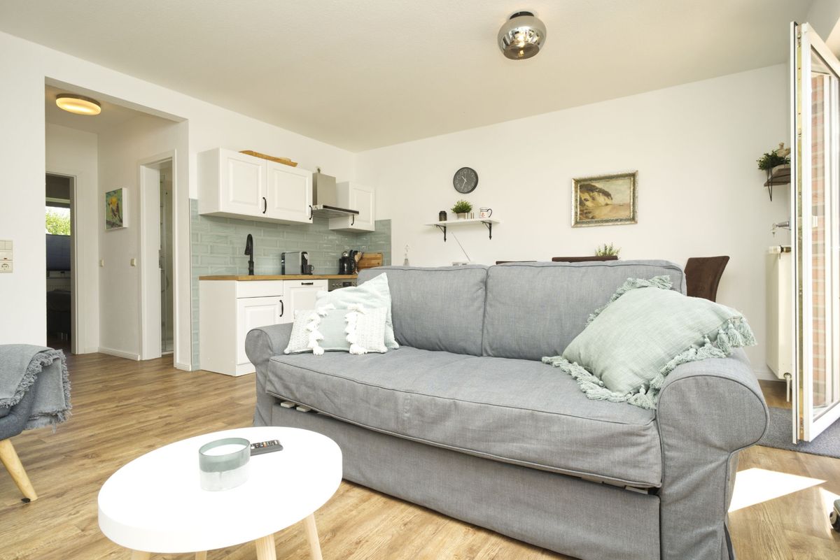 Die Ferienwohnung "Spatzenkoje" befindet sich im kleinen Fischerörtchen Wiek am Wieker Bodden. Die Wohnung ist gemütlich und modern eingerichtet. Sie besitzt ein Schlafzimmer mit großem Doppelbett. Im Wohnbereich ist eine Couch mit Schlaffunktion vorhanden. Die Küchenzeile im offenen Wohnbereich, der an die Terrasse grenzt, bietet alle wichtigen Geräte und Funktionen einer zeitgemäßen Küche.