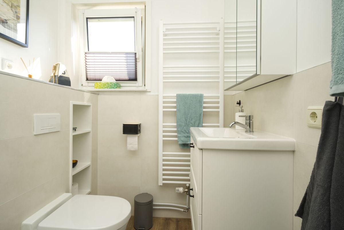 Fahrräder stehen sicher im eigenen Fahrradraum. Ein Pkw Stellplatz gehört zur Wohnung.