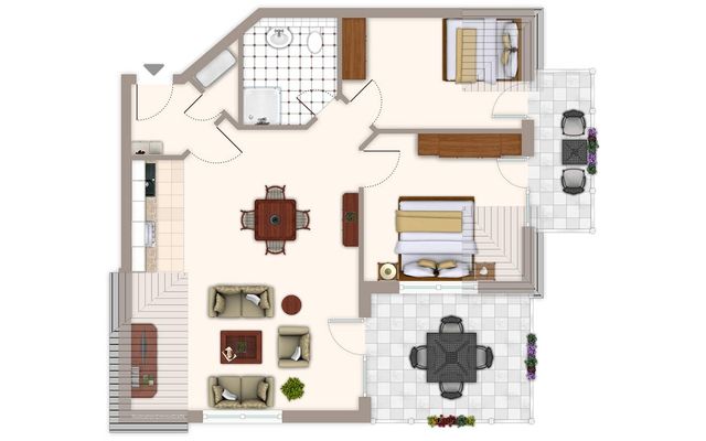 Die „Baltic Suite“ besteht aus 2 Schlafzimmern mit jeweils 1 Doppelbett, 1 Wohnzimmer mit Sitzcouch und großem Flachbild-TV (82“ Zoll), einer Küchenzeile, die voll ausgestattet ist sowie 1 Badezimmer mit Dusche und Haartrockner.