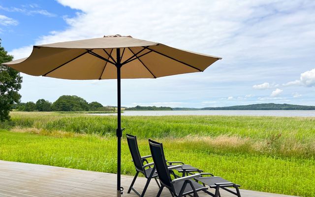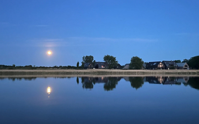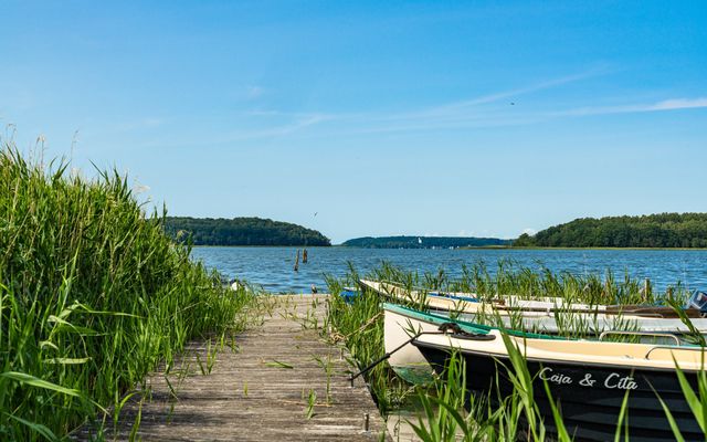 Das Herzstück des Hauses ist der große Wohnraum mit topp moderner Küche mit Kochinsel, großzügigem Essbereich, Kamin und etwas separat einer gemütlicher Couchecke mit TV. Außerdem befinden sich im Erdgeschoss ein Schlafzimmer, ausgestattet mit Doppelbett, TV und angeschlossenem Bad und ein Gäste-WC mit Waschmaschine und Trockner. Zwei weitere großzügige Schlafzimmer mit jeweils zwei Doppelbetten und TV befinden sich im ersten Obergeschoss. An diese grenzt ein Bad mit Walk-in-Dusche und Fenster. Die Galerie mit Ihrer Loggia eröffnet einen phantastischen, weiten Blick über die wunderbare Natur des angrenzenden Boddens bis nach Lietzow. Nachts ist sogar das Leuchtfeuer von Kap Arkona zu erkennen. Weiterhin steht hier ein Wellnessbad mit Sauna inkl. zusätzlichen Infrarotstrahlern zur Verfügung. Im Spitzboden sind zwei Einzelbetten und in einem weiteren Raum ein Arbeitsplatz (WLAN mit Glasfaseranschluss vorhanden) mit Aussicht auf den Bodden zu finden. Das Ferienhaus am See bietet Platz mit vollwertigen Betten für bis zu 8 Personen (weitere Aufbettung mit zwei Babybetten möglich).