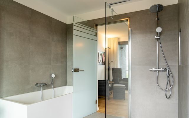- Wellnessbereich mit Sauna, Dusche und Wannenbad, Relaxbereich mit Aussicht