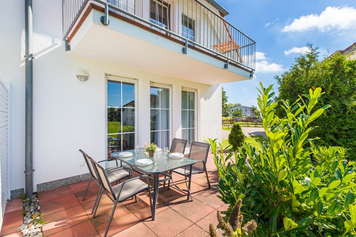 - Terrasse mit Gartenmöbeln & Strandkorb