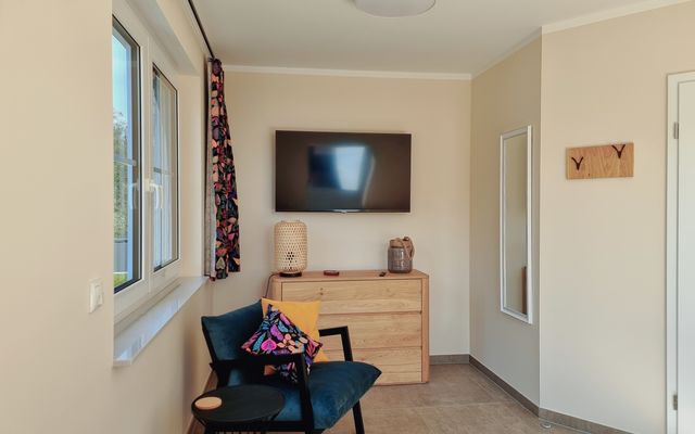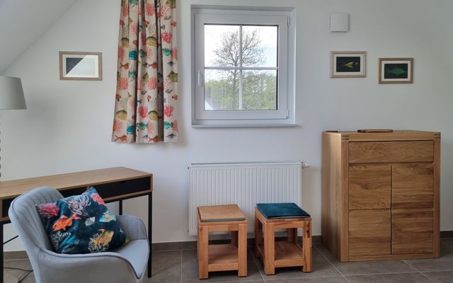Unser Ferienhaus "Sternblick" ist nigelnagelneu und mit allem ausgestattet, was das Herz begehrt und erfreut durch viele funktionale und neckische Details. Das Feriendomizil mit kleinem Garten auf umzäuntem Grundstück befindet sich in zweiter Reihe direkt hinter dem Deich des Breeger Boddens, unweit des Ostseestrandes. In drei Schlafzimmern (2x 1 Doppelbett; 1x 2 Einzelbetten) finden bis zu 6 Personen ein Plätzchen. Der Wohnbereich mit angeschlossener Terrasse und integrierter Küche ist von gemütlichen Sitzmöbeln umgeben. Der große Esstisch lädt zu Geselligkeit mit der Familie und Freunden ein. Im EG befindet sich außerdem ein separater TV Raum. Außerdem ist der "Sternblick" durch schnelles Internet und einen hellen Arbeitsplatz Homeoffice tauglich. Die Sauna im OG (kostenpflichtig) eignet sich besonders an kalten Tagen zum Relaxen und Durchwärmen. Fahrräder können im Gartenhaus abgestellt werden.