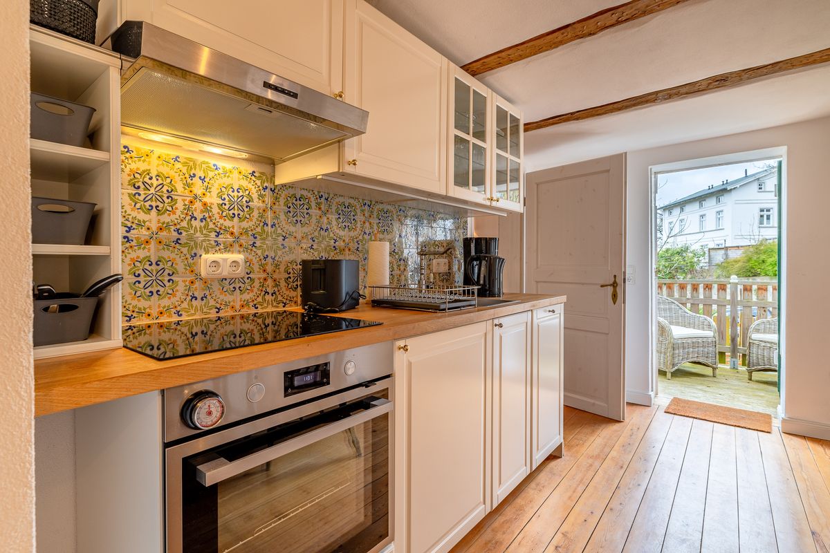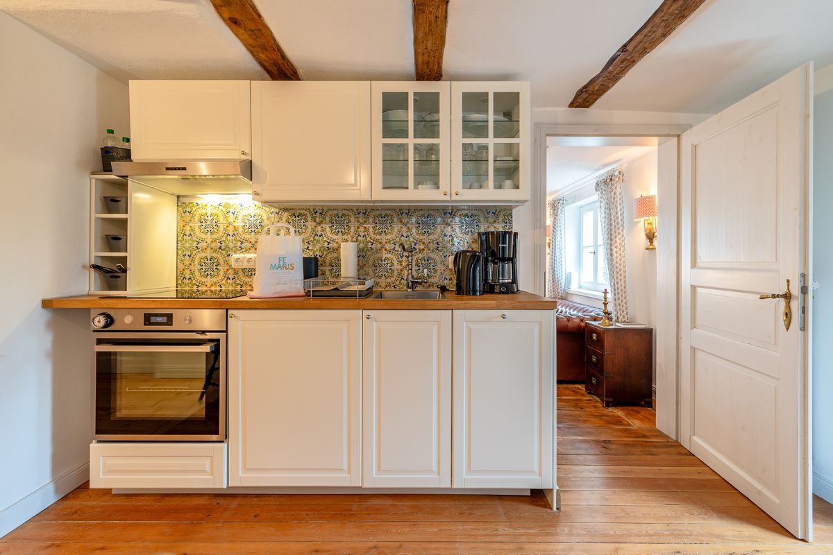 - Küche mit Kühlschrank, Herd & Ofen, Geschirrspüler, Kaffeemaschine, Toaster, Wasserkocher