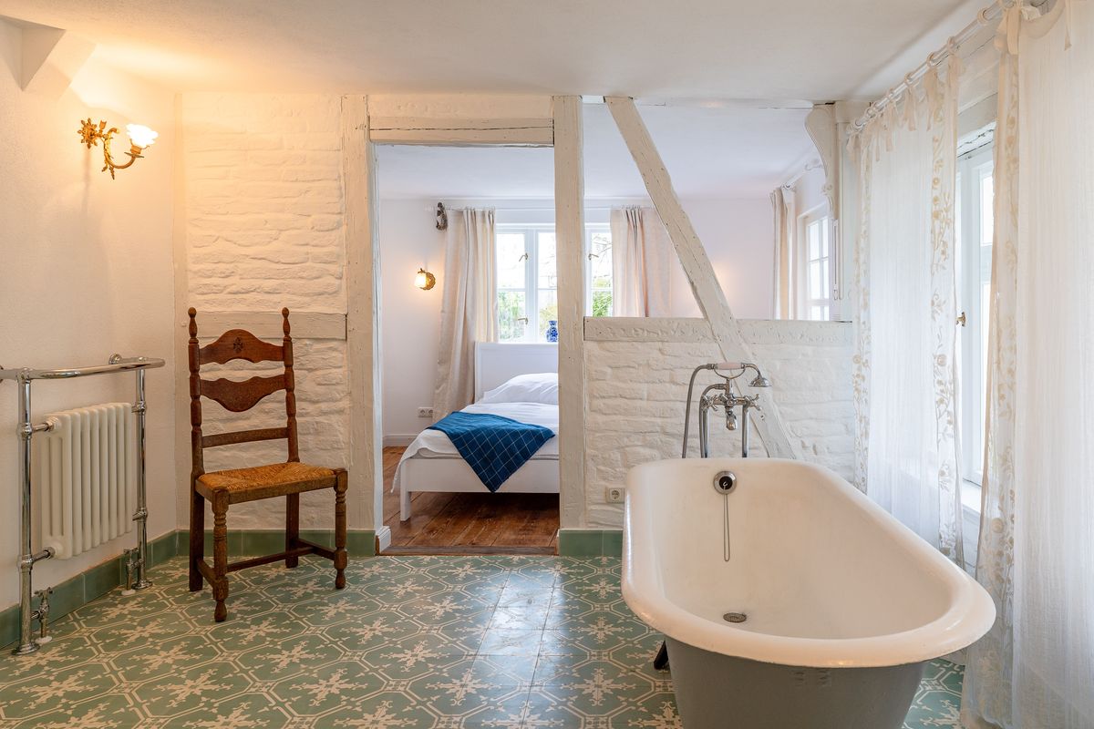 - offenes Bad mit freistehender Wanne/ separate Toilette