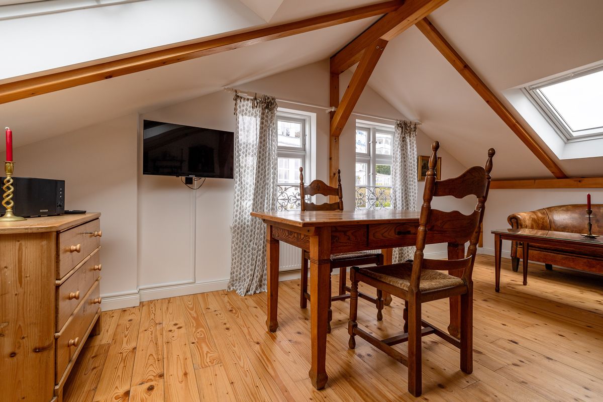 Unsere mit vielen Schätzen eingerichtete Ferienwohnung "Dwasieden" in der Villa Gustavia in der Altstadt von Sassnitz verfügt über ein Schlafzimmer mit Doppelbett, ein Bad mit Dusche und Badewanne und eine Küchenzeile im gemütlichen Wohnraum. Ein Parkplatz vor dem Haus steht zur kostenfreien Nutzung bereit. Die Wohnung ist über eine Treppe zu erreichen.