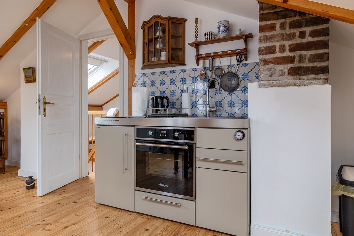 - Küche mit Backofen & Herd, Kühlschrank, Wasserkocher, Kaffeemaschine, Toaster
